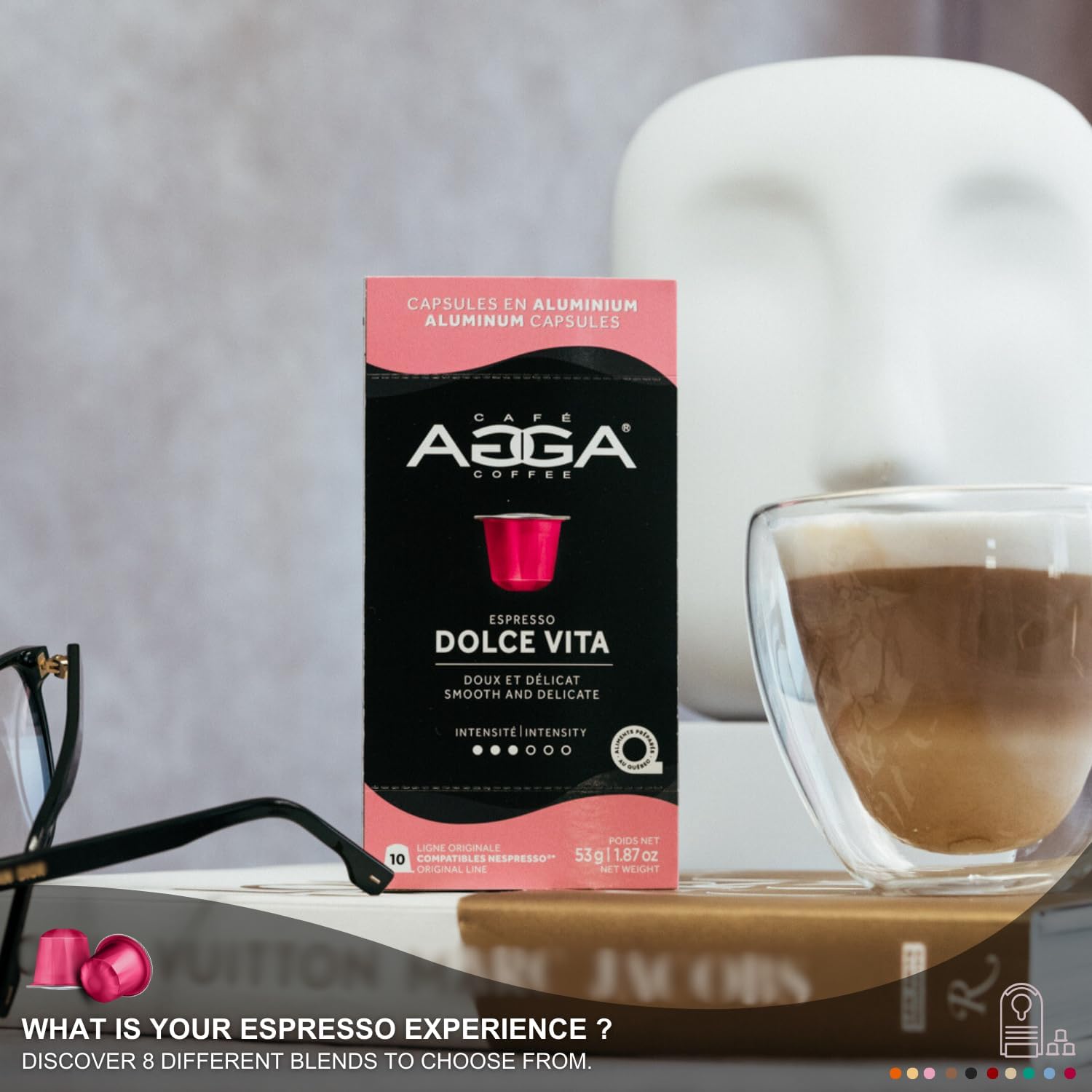 - Contenu du pack : 80 capsules de divers mélanges (Kenya AA, Intenso, Fortissimo, Lungo, Cremoso, Dolce Vita, Organico, Ristretto)